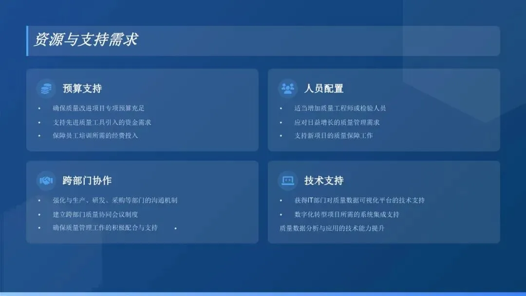 建立健全质量改进长效机制,将质量改进工作纳入日常管理,确保质量改进项目的持续性和有效性。加强质量改进工具的培训和推广应用,提高团队运用质量工具解决问题的能力。对已完成的质量改进项目进行跟踪验证,防止问题反弹,同时总结推广优秀的改进经验和方法,提升公司整体质量改进水平。