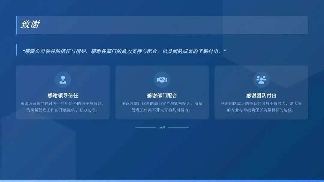 在此,衷心感谢各位领导和同事们一年来对质量管理工作的理解、支持与配合!