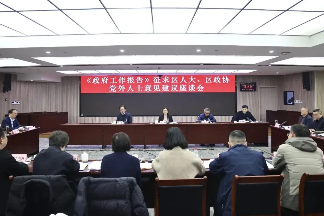 1月6日,区委副书记、区长周扬分别主持召开座谈会,就《政府工作报告》征求区级退休干部及区人大、区政协以及党外人士意见建议。区人大常委会主任叶伟平,区政协主席叶泽,区领导李军、高卫星、柴闻乐等以及区级退休干部、各民主党派、工商联主要负责人和无党派人士代表参加。