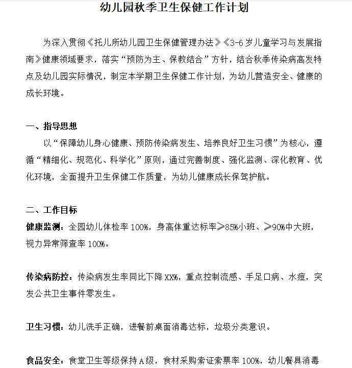 幼儿园秋季卫生保健工作总结(电子版·4页)‖ 秋季卫生保健工作计划(电子版·5页)‖ 幼儿园资源系列大全