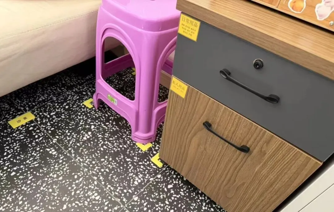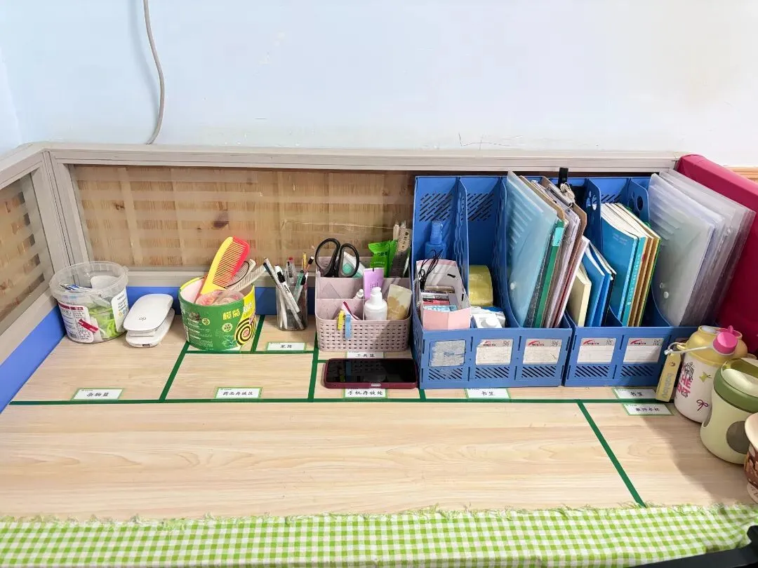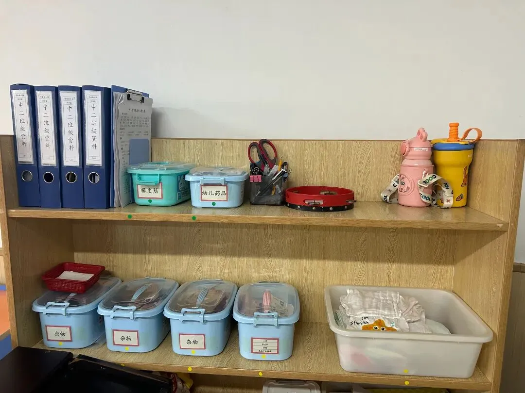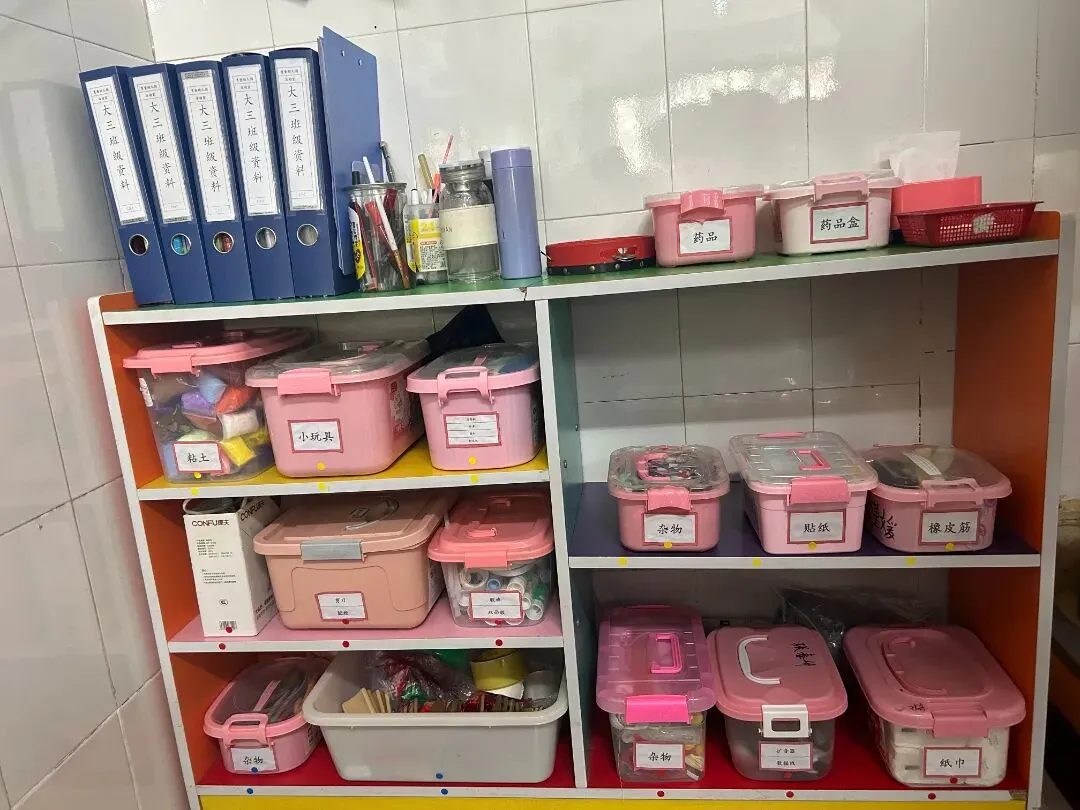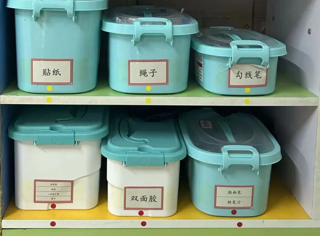 •为留存物品贴上清晰标签,划定专属摆放区域,大到厨房的厨具设备,小到保健室的棉签纱布,都实现“定点、定容、定量”存放。