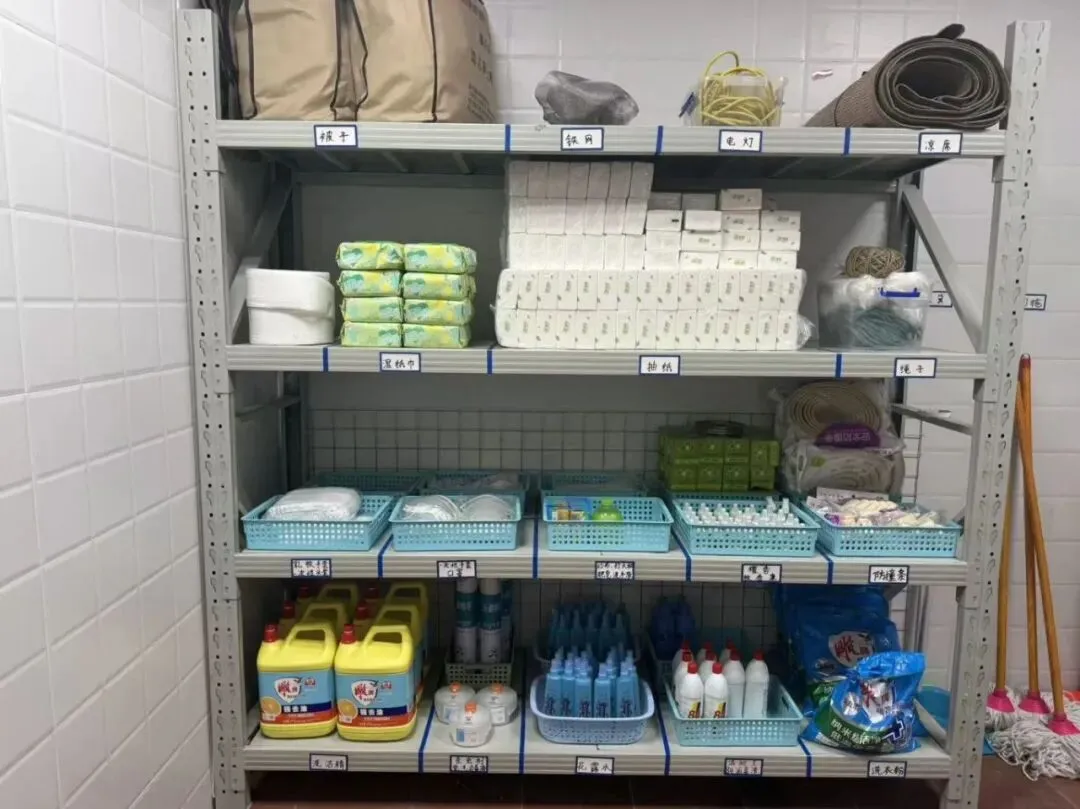 在开展本次6S管理工作中,各园后勤团队率先对仓库、厨房、保健室、保洁工具间等重点区域开展全面整理。