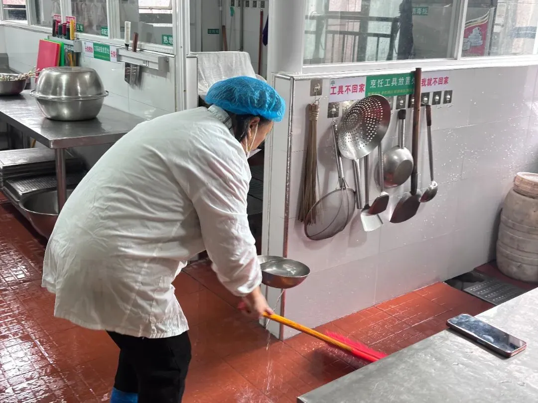 • 厨房严格执行食品卫生标准,从食材清洗、餐具消毒到灶台油污清理,每一个环节都落实到人、责任到岗。