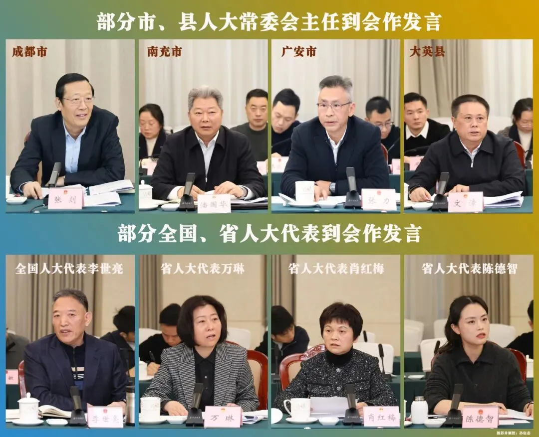 会议听取了省人大常委会研究室关于省人大常委会工作报告起草情况的汇报。部分全国人大代表和省人大代表,成都市、南充市、广安市、大英县人大常委会主要负责同志先后作了发言。