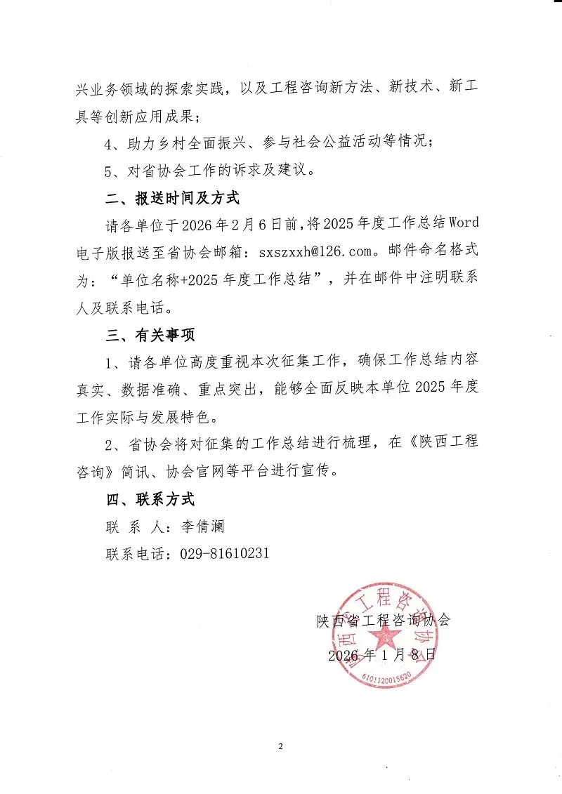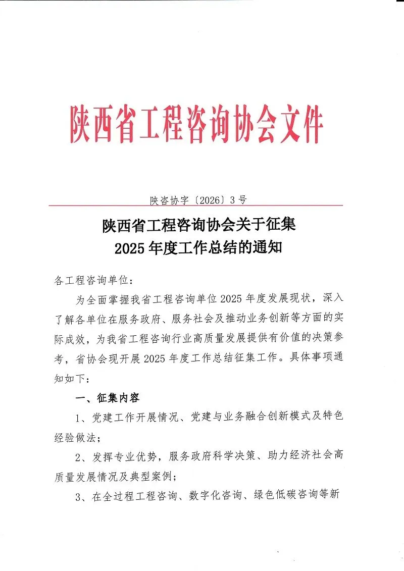 >陕西省工程咨询协会关于征集2025年度工作总结的通知