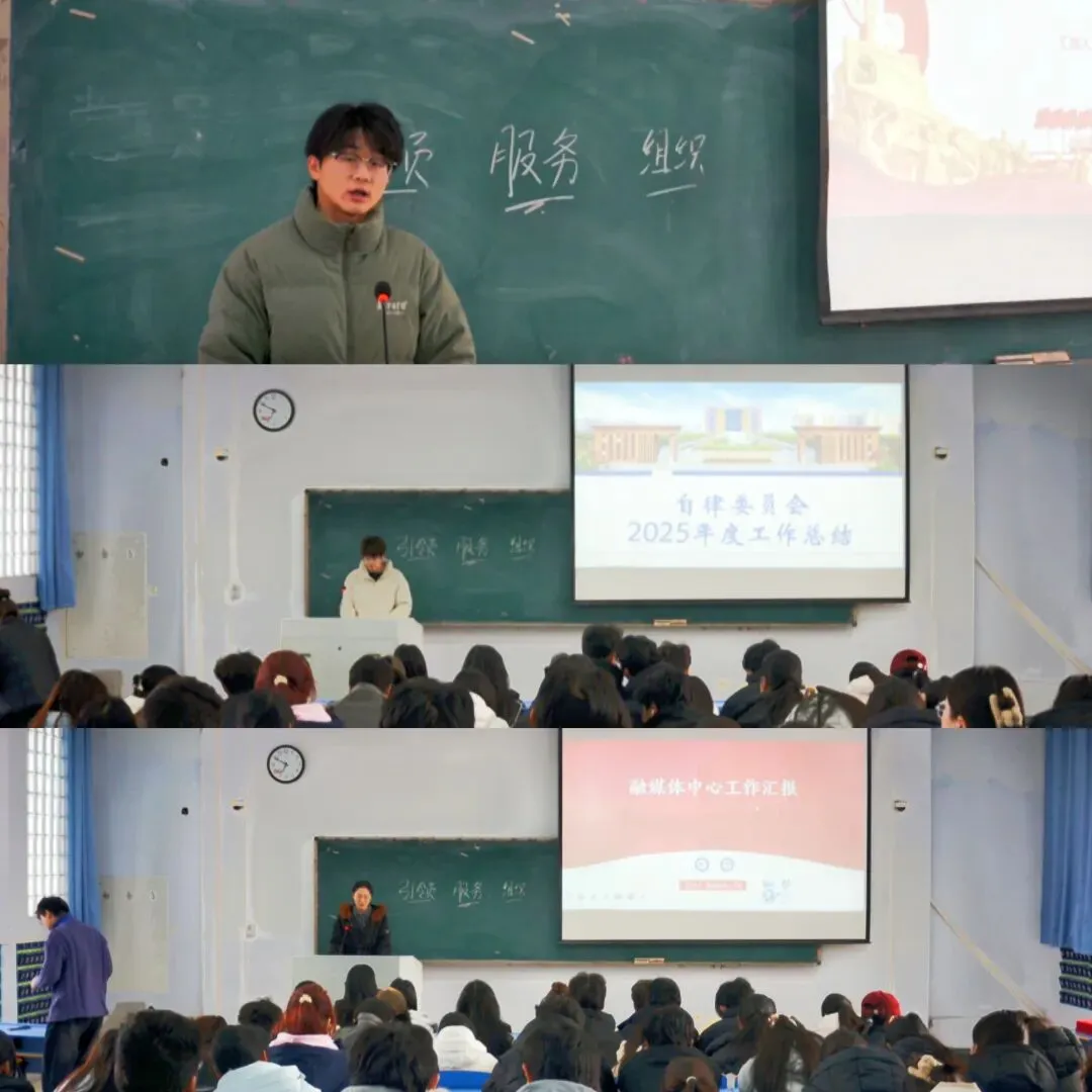 岁物丰成,薪传有自。12月26日,文法学院于05B401召开第六届分团委、学生会2025年度总结大会。学院党委书记李振宇,党委副书记郭之茵,党务专员、融媒体负责人董瑞林以及分团委、学生会全体成员参加会议,会议由分团委书记尚福星主持。