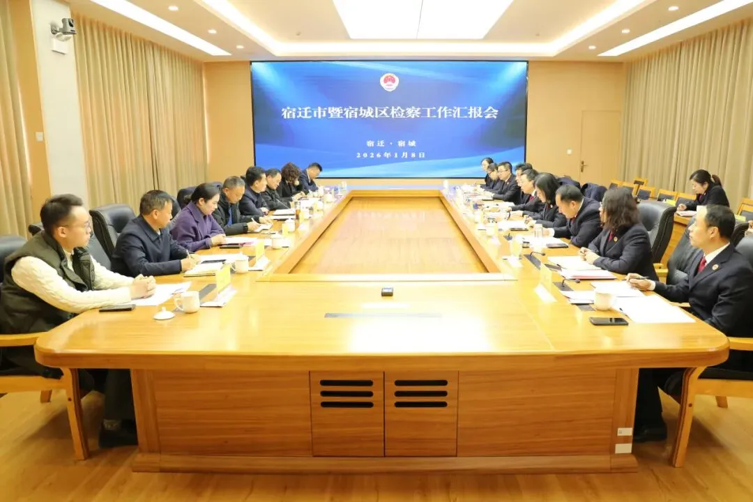 1月8日上午,2025年度宿迁市暨宿城区检察工作情况汇报会在宿城区检察院召开,宿迁市检察院检委会专职委员许兴军向部分市、区人大代表、政协委员通报2025年全市检察工作情况。宿城区人大常委会副主任、党组成员、区委办主任郝元良主持汇报会。宿城区检察院党组书记、检察长柳梅,宿城区人大常委会内司工委主任彭跃,市检察院相关部门负责人、宿城区检察院领导班子成员参加汇报会。