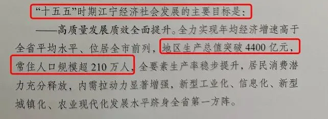 1、预计全年完成GDP3310亿元,增长5.9%。预计城乡居民人均可支配收入分别达8.2万元、4.1万元,分别增长3.5%、4.8%。2、基础配套加快完善,地铁5号线全线贯通运营,3号线三期、10号线二期开通初期运营,宁马城际进入试运行。3、打通东麒路北延、佳营南路南延等跨区域“断头路”,成元路片区城市更新启动建设。4、东山初级中学等3所中小学实行优质教育集团化办学,新改扩建江宁高级中学等学校6所,新增学位8300余个。5、区妇幼保健院基本完工,老年医院主楼主体竣工。建成开放3个儿童友好公园。6、成功引进腾讯华东云计算中心基地扩能项目、ABB传动产品超级工厂等优质项目300个。7、高新技术企业突破2600家,备案科技型中小企业超4600家。入选省级独角兽、瞪羚企业120家。国家级专精特新“小巨人”企业增至154家、制造业单项冠军企业增至18家,均位居全省区县首位。8、在全市首推人才房票政策,启动高校人才定制商品房建设,完成商品房销售191.6万平米。9、发布“青年人才聚江宁”三年行动计划,新增院士2人,新入选国家重点人才工程专家25名。10、牛首山入选“中国100必打卡景点”,全年接待游客超5000万人次,实现旅游总收入428亿元,分别增长12.3%、12%。2025年是十四五规划收官之年,十四五期间,江宁区GDP年均增长5%,人均GDP超16万元。稳居全国工业百强区、投资竞争力百强区前十。十五五,是江宁大有可为的重要战略机遇期。江宁将在此期间(2026-2030),全力实现年均经济增速高于全省平均水平、位居全市前列,GDP突破4400亿元,常住人口规模超210万人。2026年,是十五五开局之年。江宁今年的主要目标有:GDP增长5.5%以上,全体居民人均可支配收入增幅与经济增长基本同步,其中农民收入增速高于城镇居民。