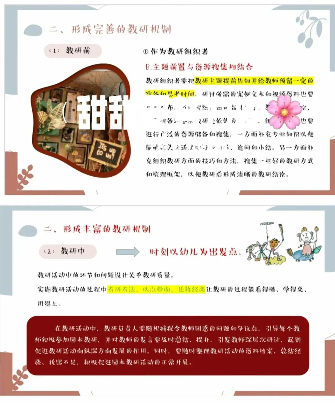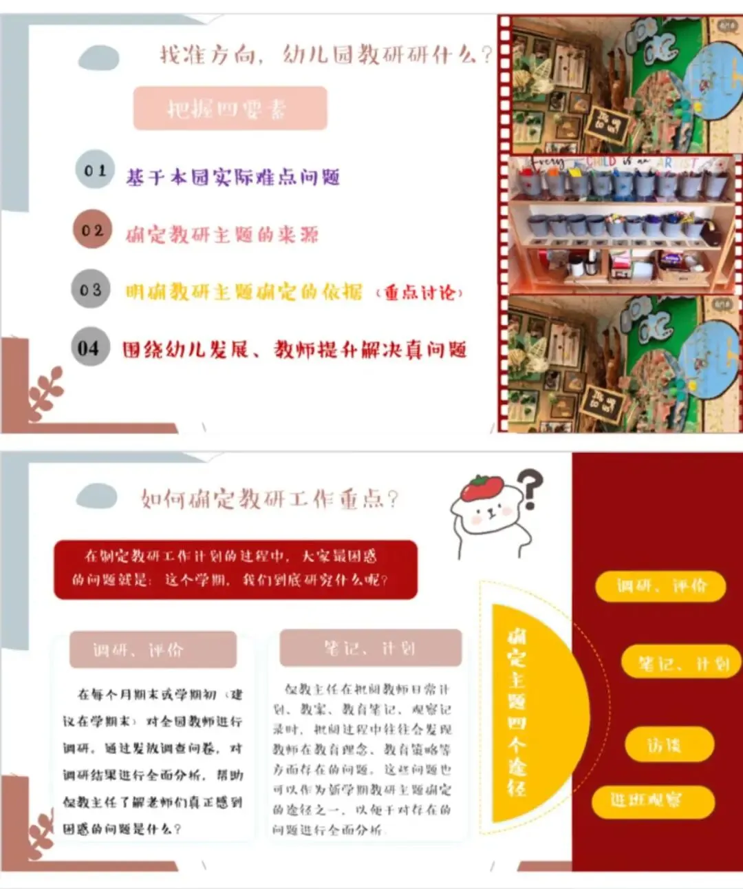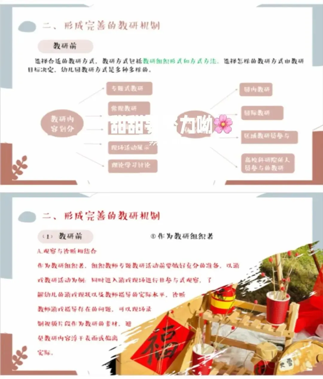 教研是推动幼儿园发展的强劲引擎,为园所进步持续赋能。为切实提升保教质量,让教学与教科研工作走深走实,真正达成以研促教、以教促学、共同成长的效果,我园教研组开展成果汇报活动。[开箱R][开箱R] 教研汇报不仅系统梳理了一学期的教研收获,更在反思中总结经验、蓄力成长,为园所未来发展凝聚前行力量。[加油R][加油R]