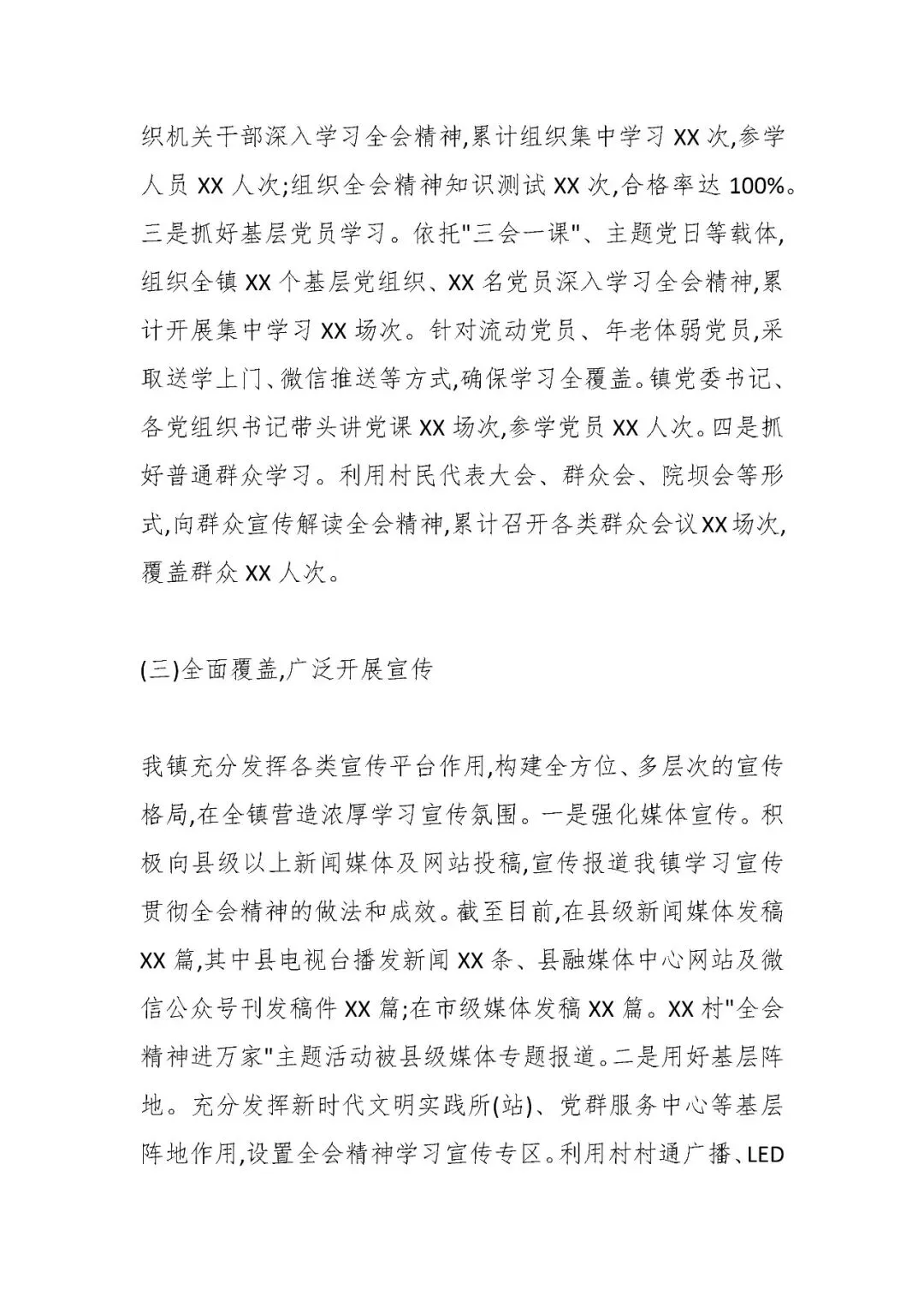 >XX镇学习宣传贯彻党的二十届四中全会精神工作情况报告