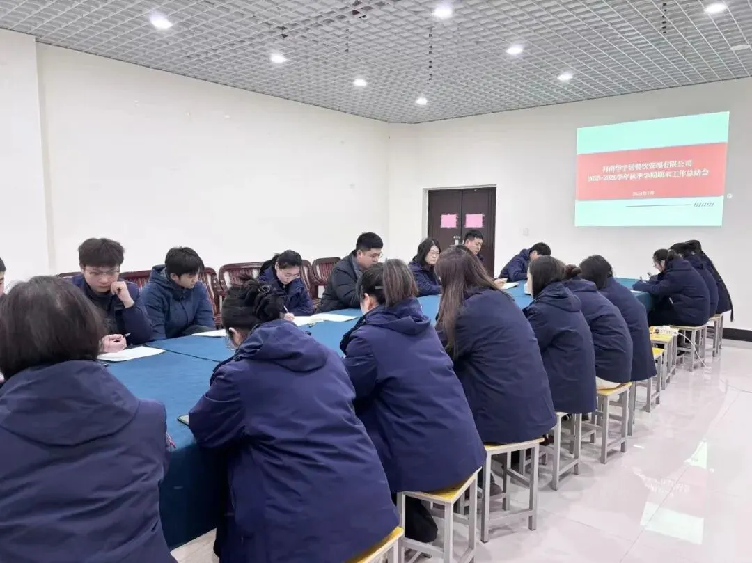 1月9日,河南华宇居餐饮管理有限公司在双创2001组织召开本学期工作总结会,系统总结本学期各项工作开展情况,梳理经验成效,查找不足短板,为下一阶段工作明确方向、凝聚共识。公司总经理石浩然及全体行政员工参加会议。