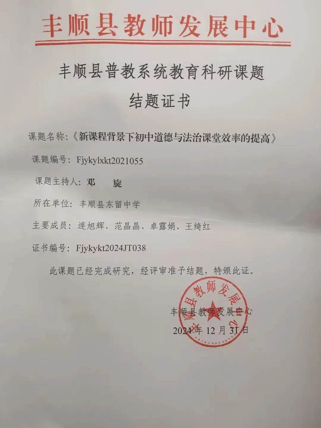 这一年,我的教育科研也取得了新的突破:主持的县市级课题顺利结题,将实践经验转化为系统研究成果;通过课题研究,我更深刻地理解了德育工作的内在规律,形成了更加科学的工作思路。