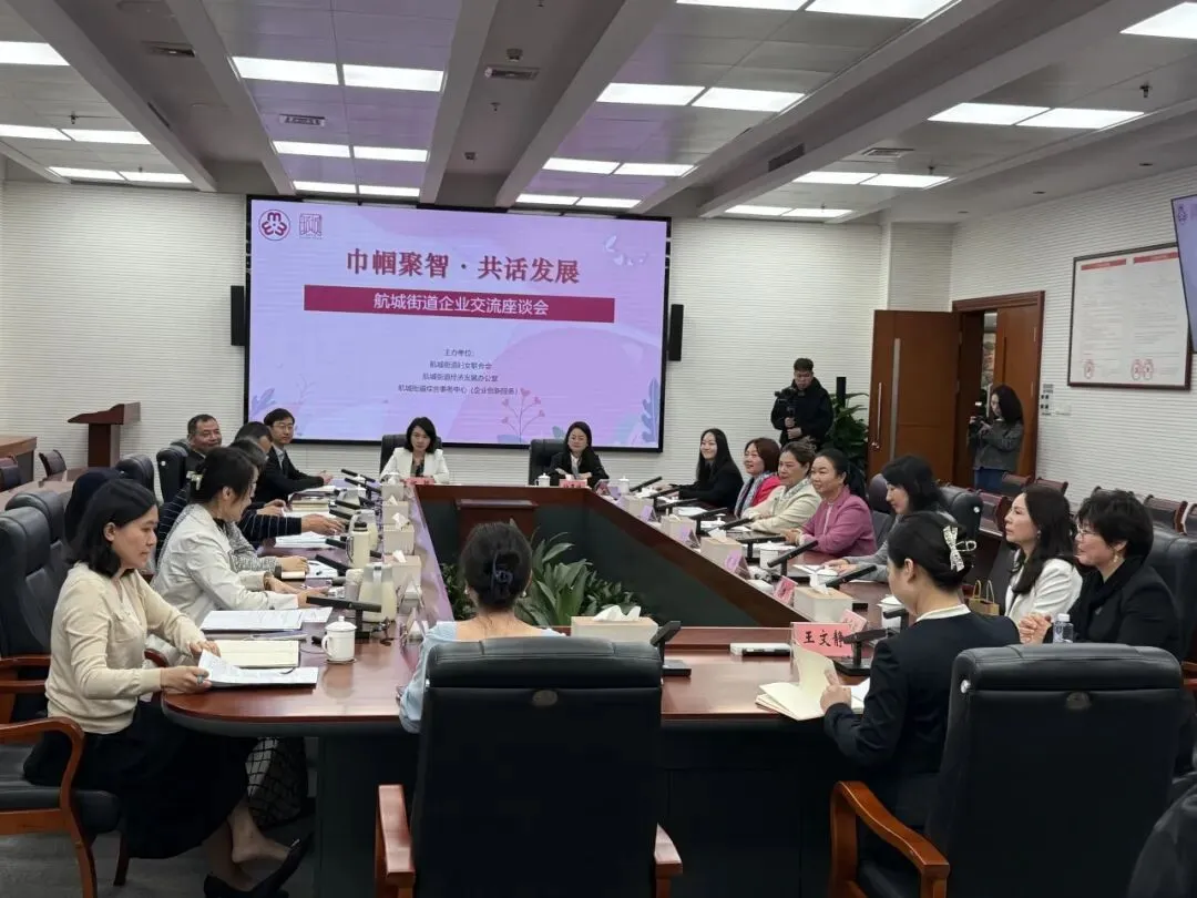 航城街道举行“巾帼聚智 共话发展”企业交流座谈会,街道党工委书记高涛,街道党工委副书记、办事处主任刘斌,与我会党支部书记、常务副会长欧阳江兰,理事何颖等来自航城街道的11位女企业家、女性职业代表畅谈发展,共话航城美好未来。