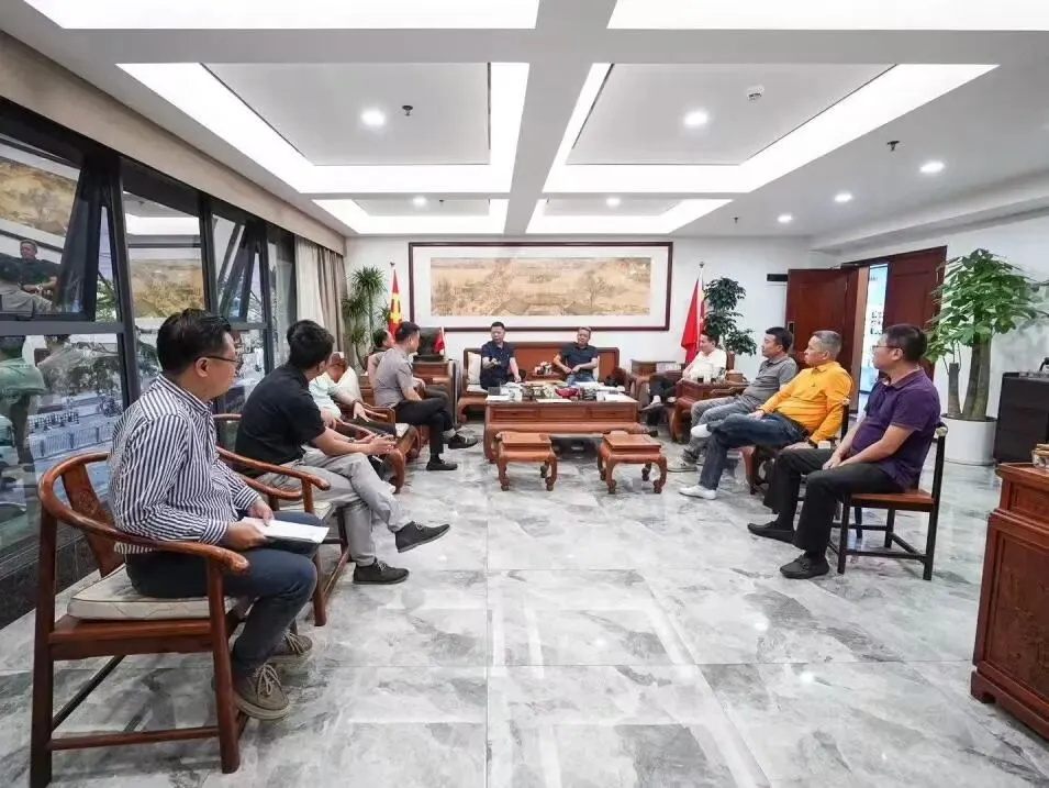 宝安区委常委、统战部部长卫树强到我会副会长曾利国单位深圳市宝安建鑫实业有限公司调研指导工作。