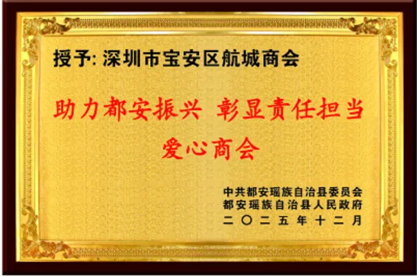 都安瑶族自治县委员会、人民政府为我会颁发“助力都安振兴 彰显责任担当”爱心商会称号,感谢我会对都安振兴的帮扶与支持。