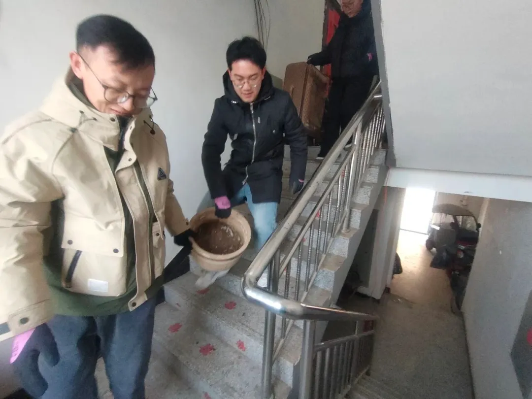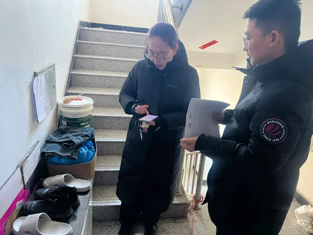 百镇工作人员与双塔街社区工作人员入小区排查安全隐患并劝说、帮助居民清理乱堆乱放。