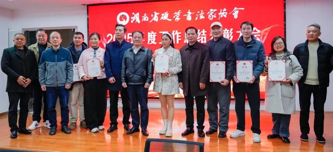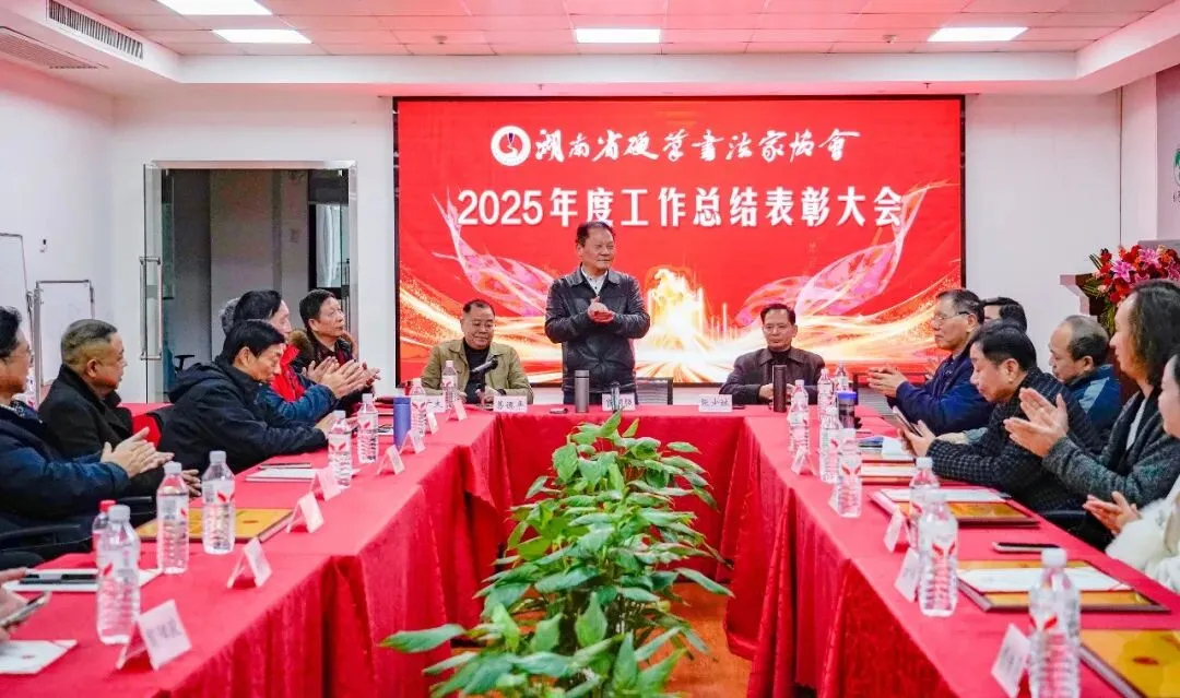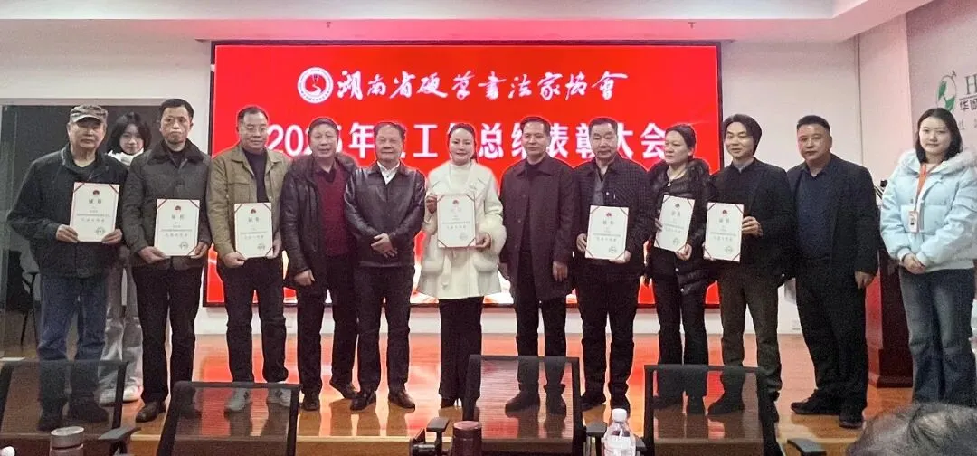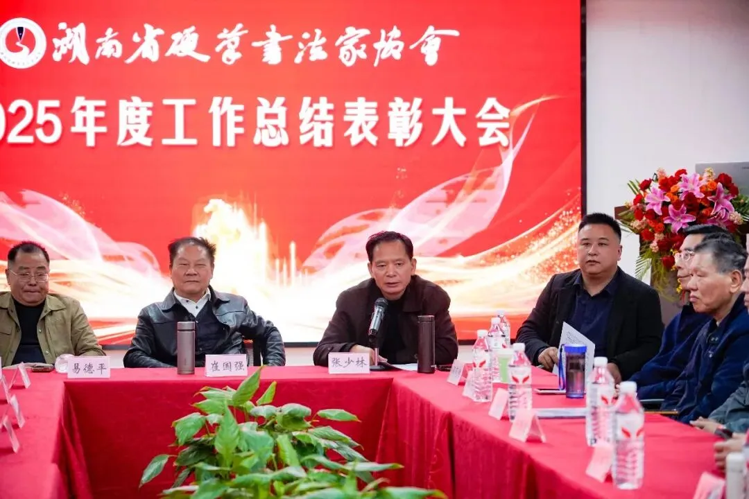 冬藏蓄力凝硕果,翰墨飘香启新程。2026年1月8日,湖南省硬笔书法家协会2025年度工作总结表彰大会在长沙隆重召开。中国硬笔书法协会原副主席、湖南省硬笔书法家协会主席崔国强,党支部书记兼副主席张少林,监事长林广大,副主席邹克胜、易德平、李正平、彭小沙、李付飞、王益军、蔡炜、唐祥飞、甘涛、许国章、宋晓明,荣誉副主席叶衍清,以及协会主席团成员、秘书处、各委员会相关负责人和先进集体与先进个人获奖代表齐聚一堂,共话发展蓝图,共证荣耀时刻。大会由副主席兼执行秘书长李付飞主持。