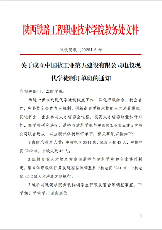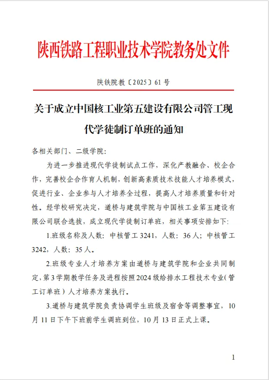 成立中核五公司订单班5个,“管工班”3个、“电仪班”2个,组班数量全校第一。