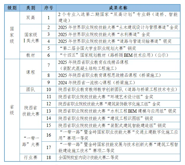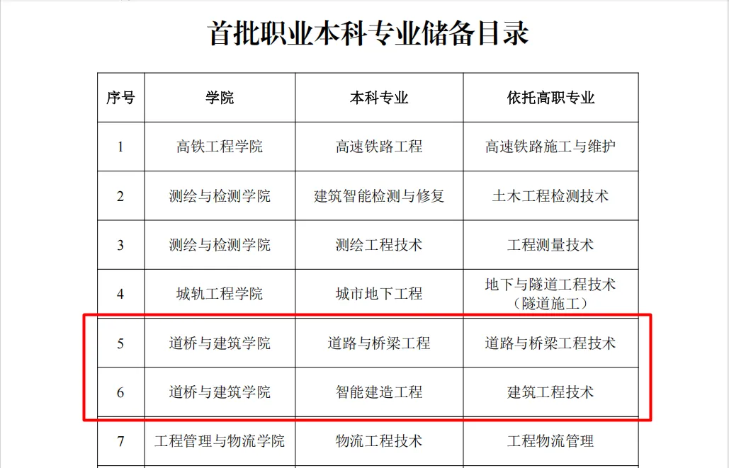 道路与桥梁工程、智能建造工程2个专业入选学校职业本科专业培育计划,数量全校并列第一。