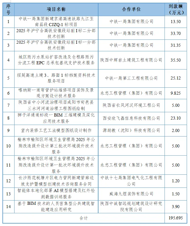 本年度技术服务到款190余万元,全校各部门最多。中标央企某局技术服务项目(第一期),中标价475万元,单项合同额近几年最高。