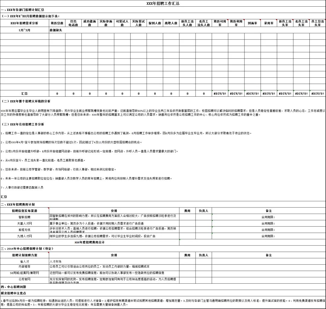 12份招聘工作总结范文,word\Excel格式,可复制,可编辑,适合书面年终总结。