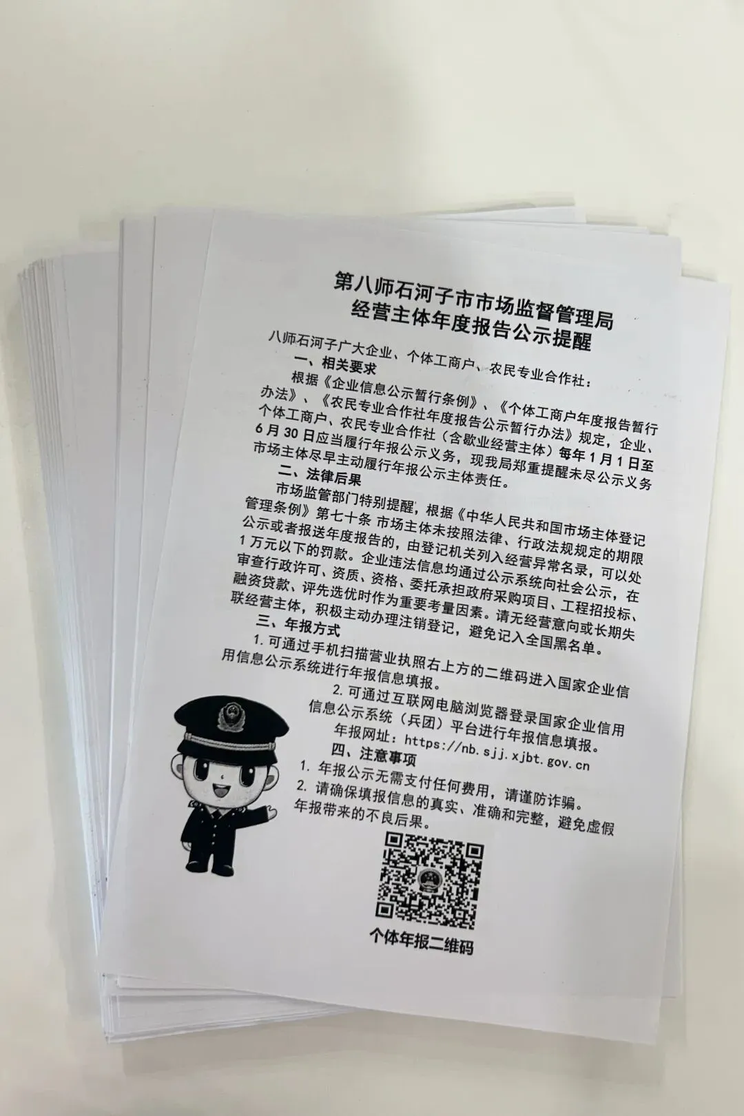师市市场监督管理局第一所一级科员罗康说:“近期我们已通过微信推文、视频、经营主体微信群发布相关通知。各类经营主体可以通过扫描营业执照上方二维码,进入国家企业信用信息公示平台,自行进行年度报告申请。”
