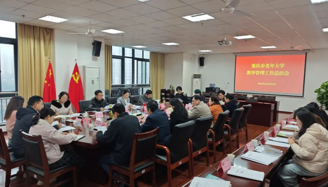为深入贯彻落实党的二十届四中全会精神和市委六届八次全会精神,总结2025年教学管理工作成效,科学谋划未来发展路径,2025年12月25日,重庆市老年大学召开年度教学管理工作总结会议。校领导、相关科室负责人、各教学系主任共20余人参加会议。