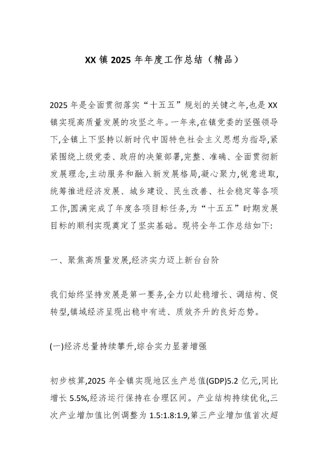 >XX镇2025年年度工作总结