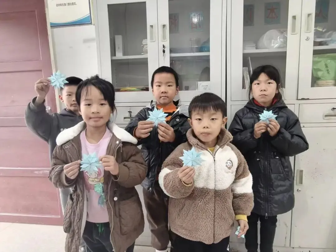 4.1月7日,狮力完全小学开展丰富多彩的社团活动,本周美术社团课上,一年级小朋友折出一只只美丽的孔雀,二年级小朋友将冬日雪花折在掌心。