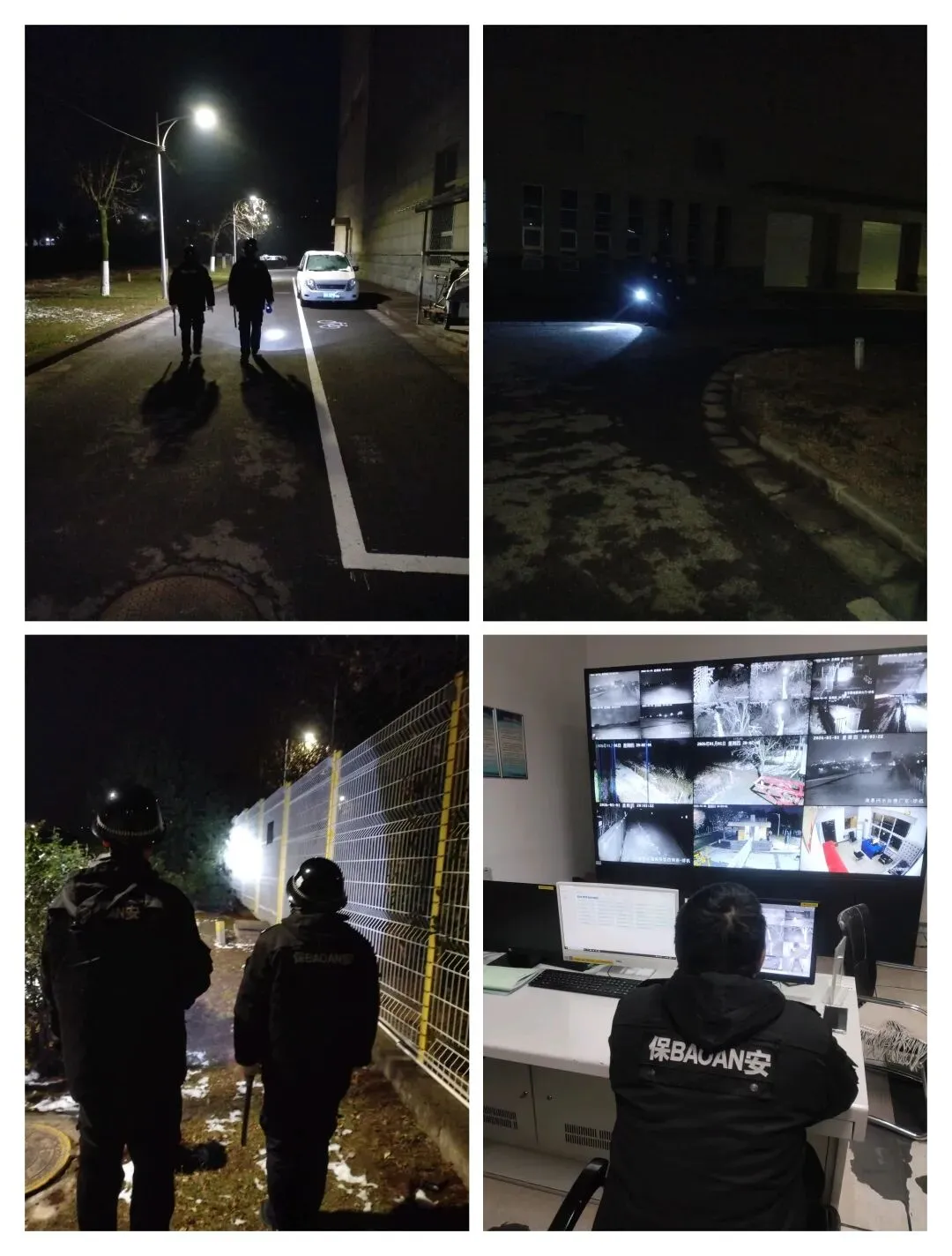 坚持夜查机制,带班班长不定时对保安员夜间岗位履职情况进行监督和检查,强调夜间执勤秩序,杜绝出现睡岗、脱岗现象。监控室和巡逻队对四周围栏和围墙加强巡查,发现问题及时上报带班班长,带班班长第一时间到达现场处置,并上报领导做好记录,确保园区夜间安全。