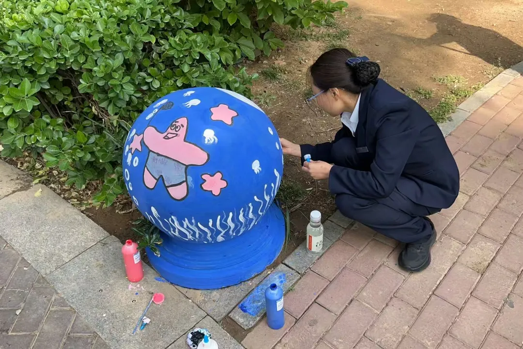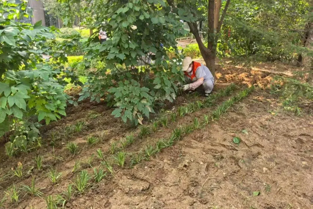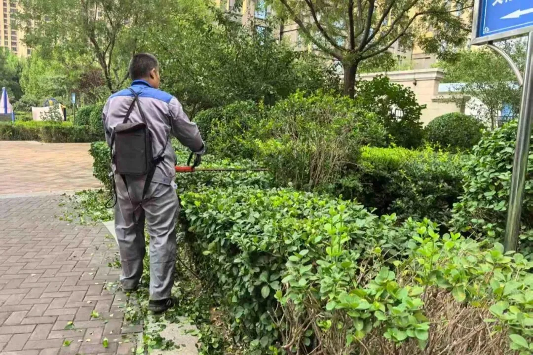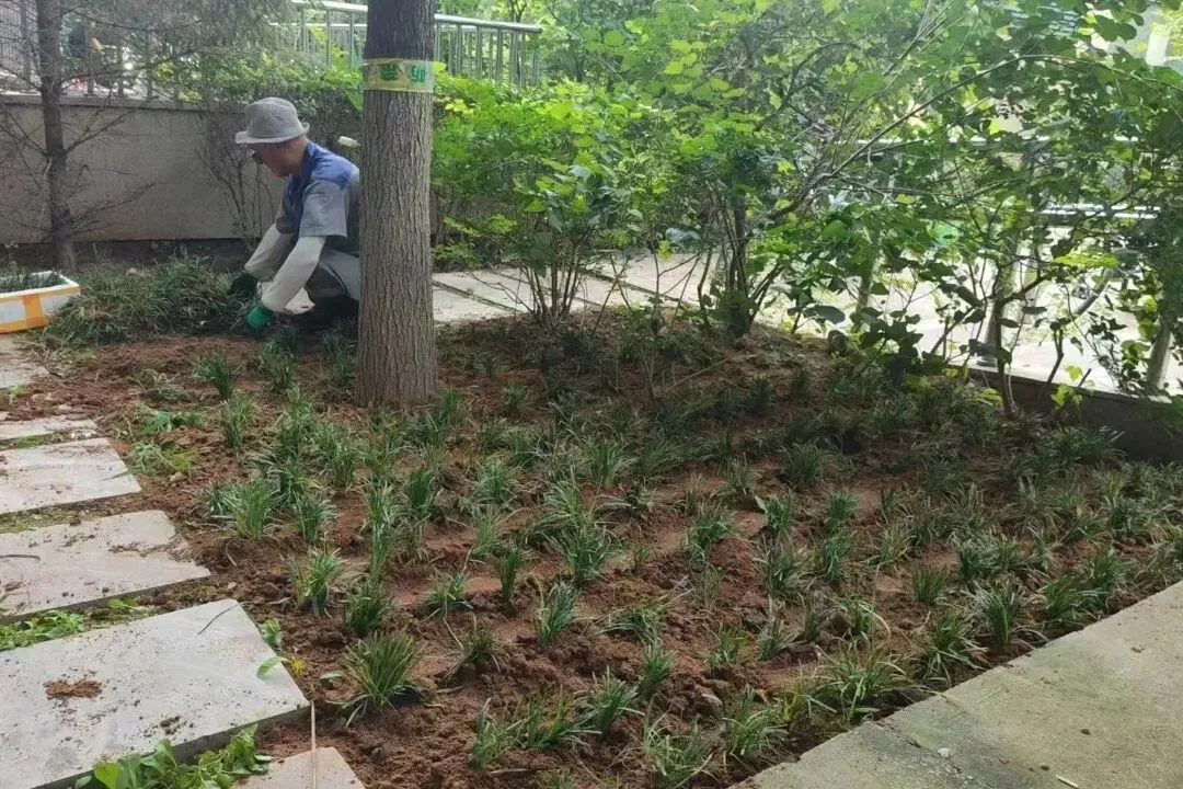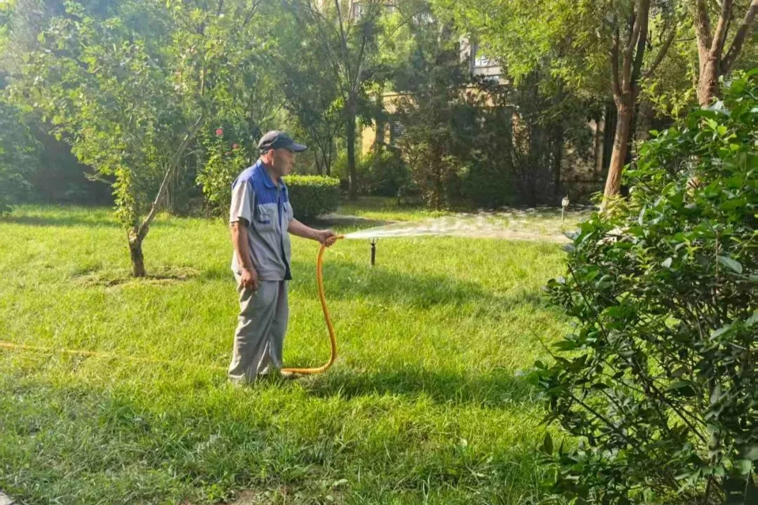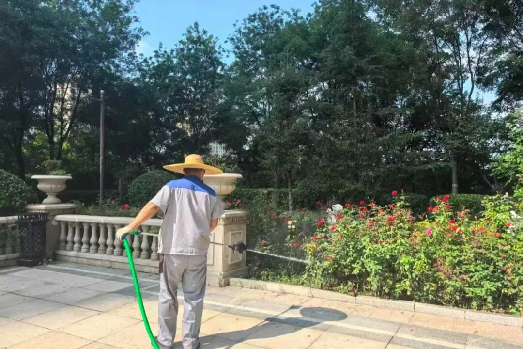 一草一木皆牵挂,日常养护不含糊,早晚浇水保生机,修枝除杂焕新颜,烈日当空也坚守,园区绿意常在线。