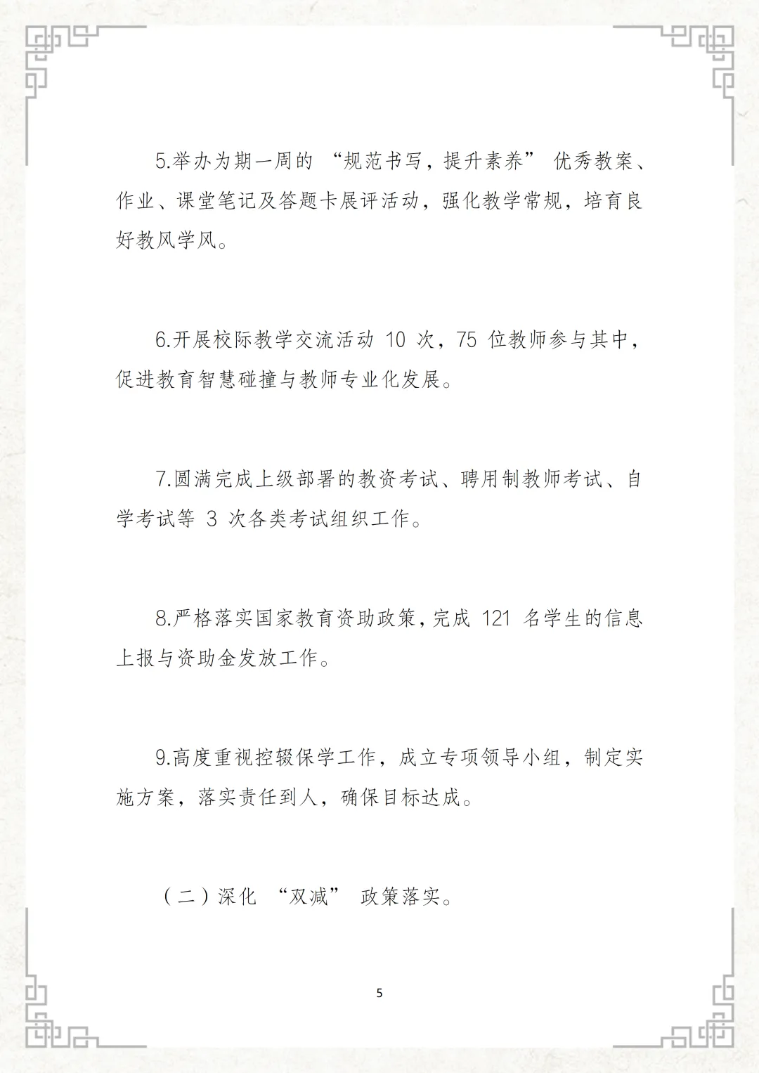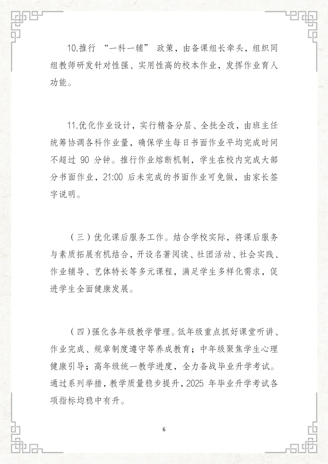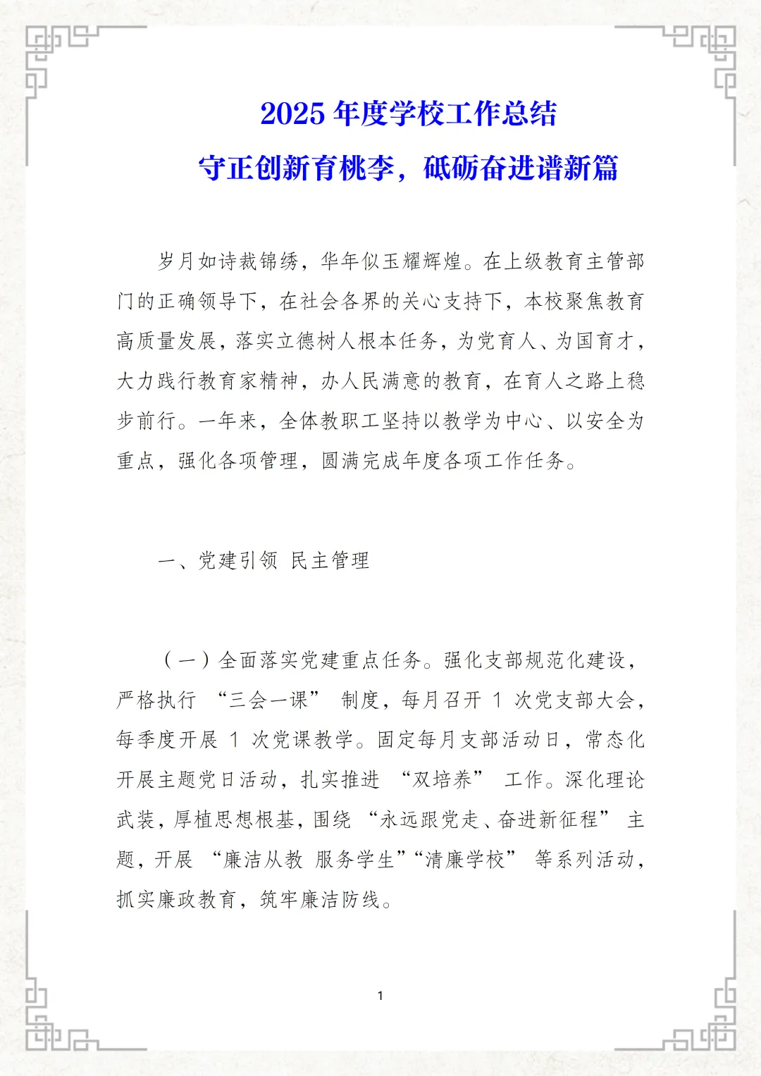 岁月如诗裁锦绣,华年似玉耀辉煌。在上级教育主管部门的正确领导下,在社会各界的关心支持下,本校聚焦教育高质量发展,落实立德树人根本任务,为党育人、为国育才,大力践行教育家精神,办人民满意的教育,在育人之路上稳步前行。一年来,全体教职工坚持以教学为中心、以安全为重点,强化各项管理,圆满完成年度各项工作任务。