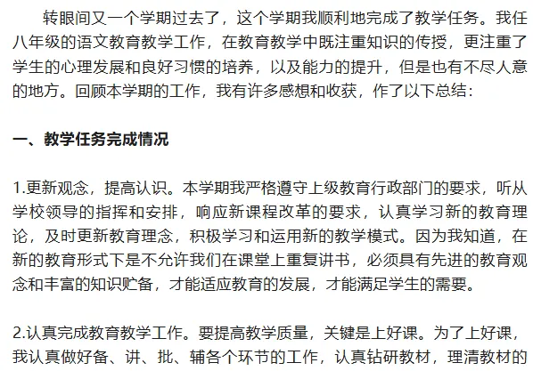 统编版八年级语文上册教学工作总结