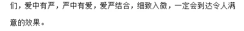 小学班主任特别是一年级的班主任,是一个复合性角色。当孩子们需要关心爱护时,班主任应该是一位慈母,给予他们细心的体贴和温暖;当孩子们有了缺点,班主任又该是一位严师,严肃地指出他的不足,并帮助他改正。于是,我认为班主任工作是一项既艰巨而又辛苦的工作。说其艰巨,是指学生的成长,发展以至能否成为合格人才,班主任起着关键性的作用,说其辛苦,是指每天除了对学生的学习负责以外,还要关心他们的身体、纪律、卫生、安全以及心理健康等情况。尽管这样,下面我就谈几点做法和体会。