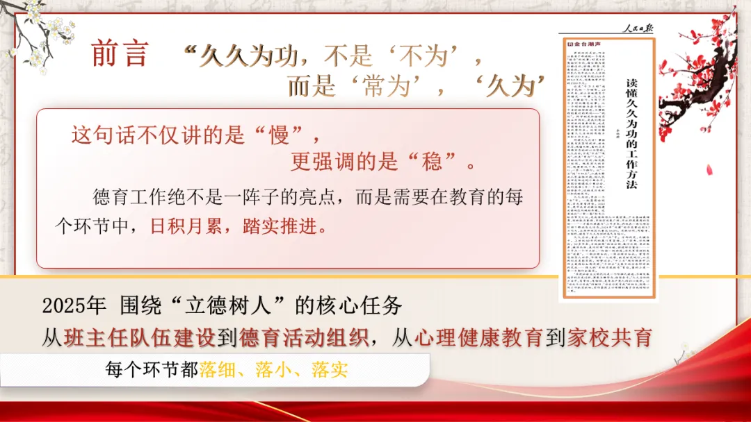 德育工作如春风化雨,贵在“常为”与“久为”。本学期,我校围绕“立德树人”根本任务,稳扎稳打,推动德育工作制度化、专业化、活动化、心育化与协同化,力求在教育的每个环节深耕细作,促进学生全面健康发展。