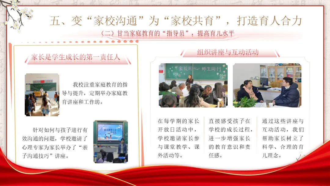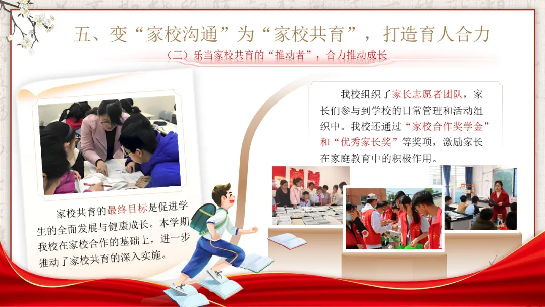 强化家校沟通,通过家长会、家校平台、开放日等渠道,保持信息畅通,增进理解互信。举办家庭教育讲座,提升家长育儿能力;鼓励家长参与志愿服务,建立“家校合作奖学金”,推动形成教育共同体,共同助力学生发展。