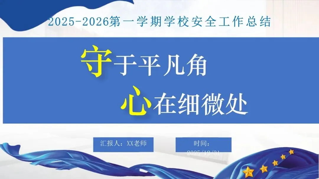 大家好!今日分享《2025年秋季学期安全工作总结“守”于平凡角,“心”在细微处》课件PPT电子版可编辑。