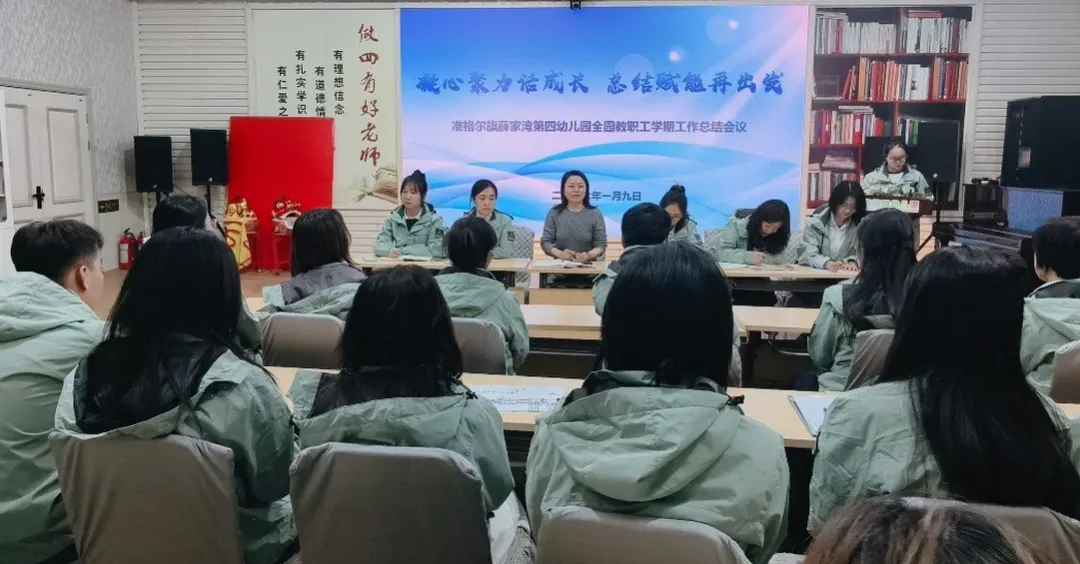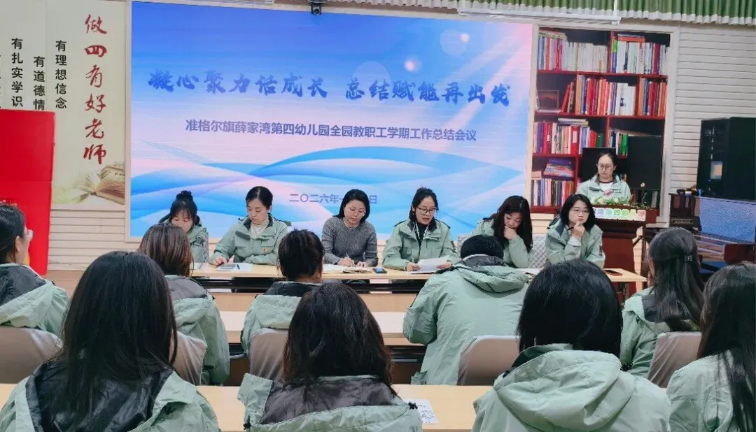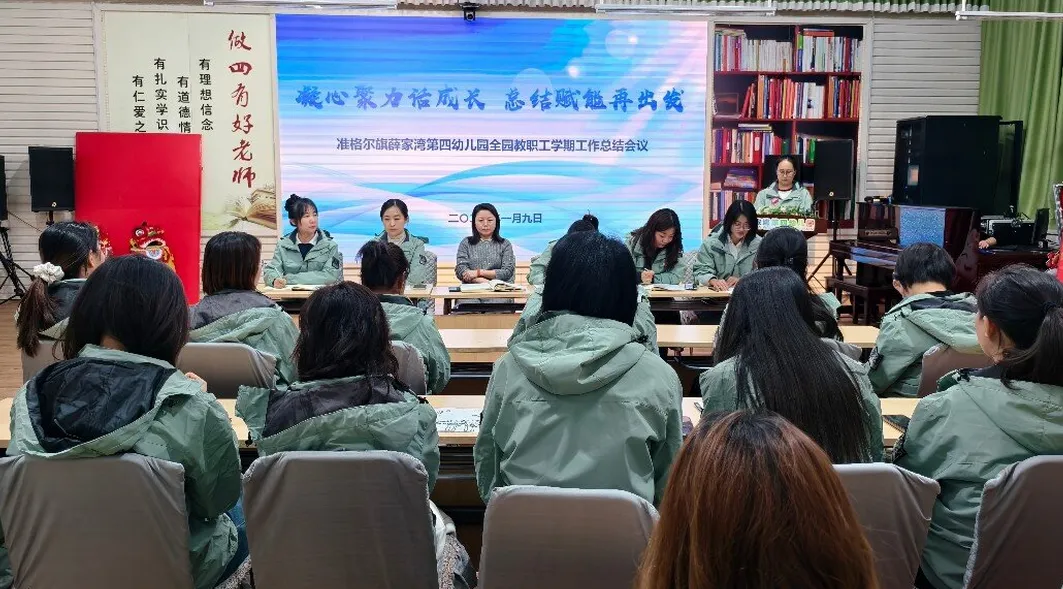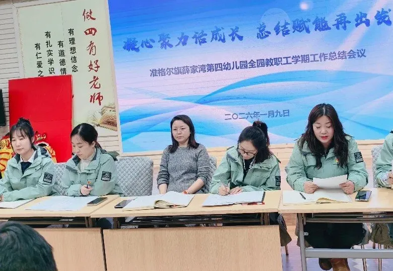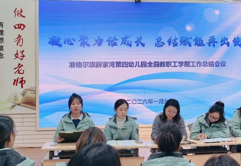 为全面总结本学期工作成果,明确假期安排及下阶段发展方向,准格尔旗薛家湾第四幼儿园于2026年1月9日召开全园教职工学期工作总结会议。会议系统梳理工作成效,凝聚团队力量,为新学期发展蓄势赋能。 会议伊始,保教、后勤、保健、行政等部门负责人依次上台述职。保教部门以“课程游戏化推进”为主线,分享了本学期主题活动创新、幼儿发展评估等成果;后勤部门围绕“安全保障与服务质量提升”,汇报了设施维护、办园条件改善、膳食管理等工作亮点;保育保健部门聚焦“健康守护”,展示了卫生消毒、保育常规等精细化举措;行政部门则从团队建设、家园共育等角度总结了服务支持效能。各部门通过数据支撑、案例分享,既呈现了工作实效,也坦诚剖析了协作效率待提高、创新力度需加强等不足,为后续改进明确方向。 副园长武秀娟结合上级文件要求,从安全防护、专业提升、家园沟通三方面部署假期工作,武园长特别强调:“假期是休整期,更是充电期,希望全体教职工劳逸结合,以更饱满的状态迎接新挑战。” 园长陈凤华最后作总结发言。她充分肯定了本学期各部门在保教质量提升、家园共育深化、园所规范管理等重点工作中的突破,特别点赞了教职工在突发任务中的担当精神。同时,她也提出以下阶段目标:聚焦内涵发展,深化游戏化教育理念,优化课程建设;聚焦团队建设,打造高素质教师队伍;聚焦儿童本位,提升保教工作精细化水平。 陈园长勉励全体教职工:“教育是一场向美而行的遇见,让我们以总结为镜,以规划为帆,携手书写四幼高质量发展的新篇章!” 此次会议既是对过往的全面复盘,更是对新征程的动员令。准格尔旗薛家湾第四幼儿园全体教职工将以此次总结为起点,凝心聚力、笃行不怠,为幼儿成长撑起一片更广阔的天空!
