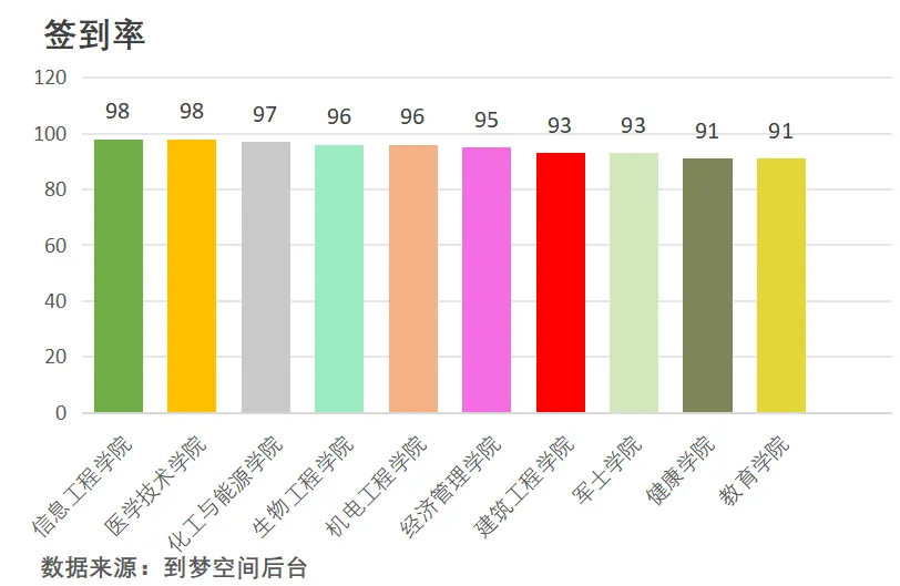 各二级学院签到率情况: