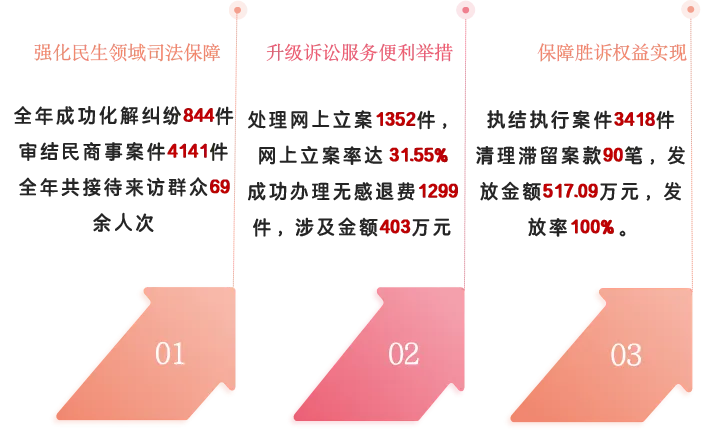 ·线上依托人民法院在线服务平台,处理网上立案1352件,网上立案率达31.55%,平均立案周期缩短至3天。