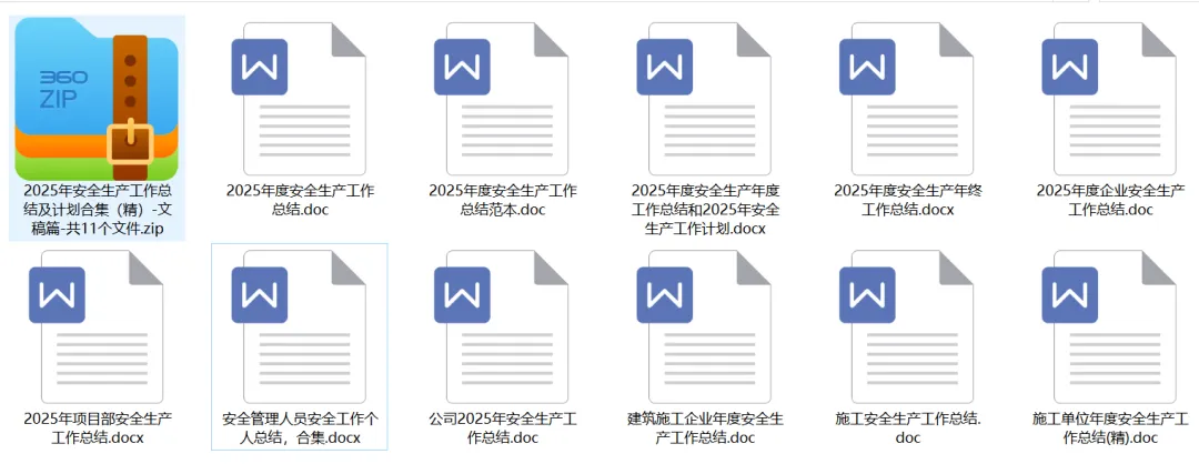 2025年安全生产工作总结及计划合集(精)-文稿篇-共11个文件.zip