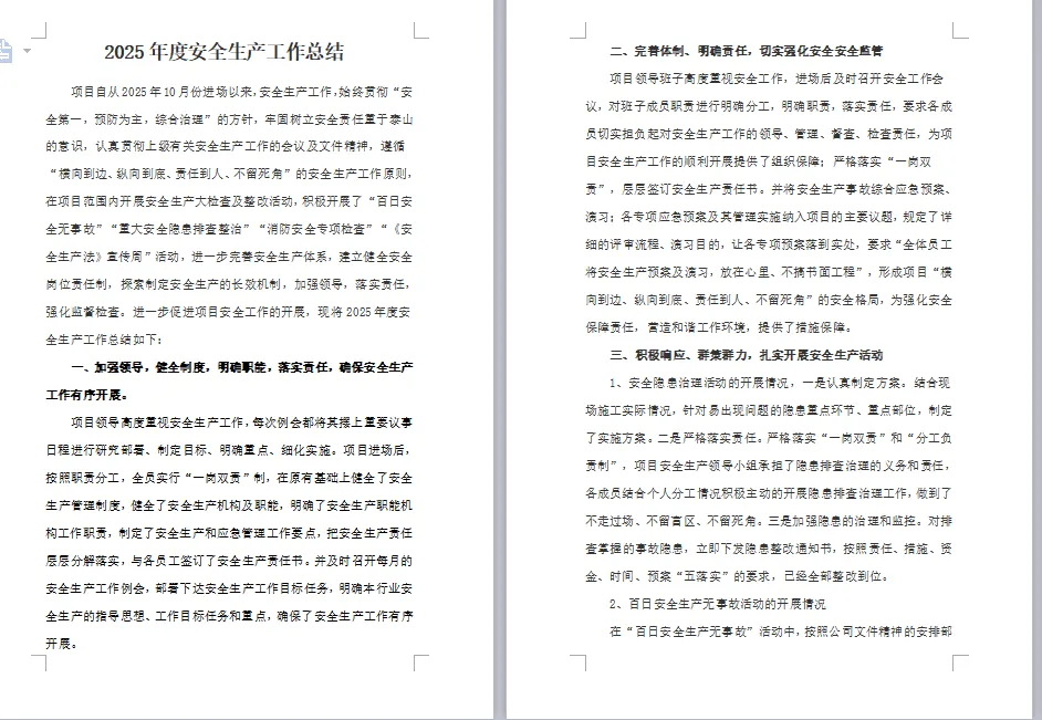 2025年,安全科在上级主管部门及公司的正确领导下,坚持“安全第一,预防为主,综合治理”的安全生产方针,完善公司各项安全管理制度,规范统一施工现场安全资料管理,并且定期性地开展了安全生产检查活动,通过加强施工安全生产管理工作,完善和落实一系列安全管理措施,加强对各项目部的监管,使各项工作取得了一定的成效。