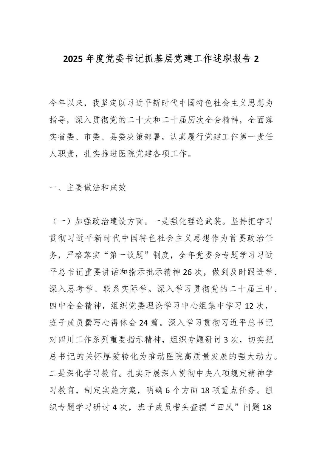 >2025年度党委书记抓基层党建工作述职报告2