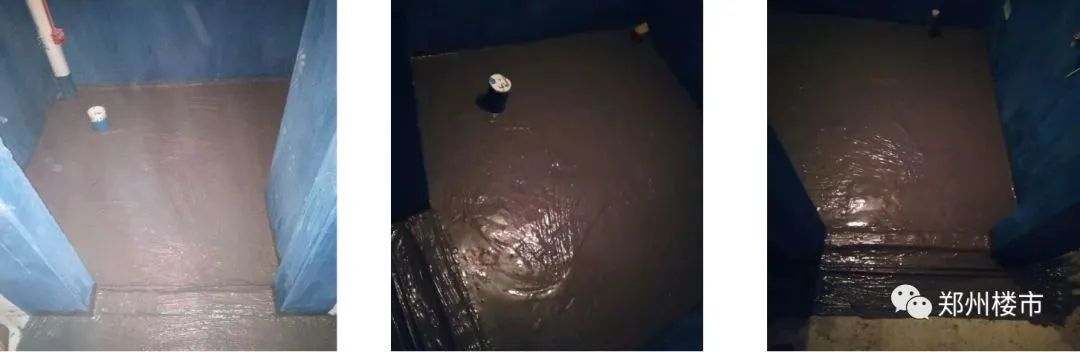 6、闭水试验蓄水高度3CM时间为24小时,经过楼下检测,顶面无漏水渗水及其他潮湿现象。↓↓↓
