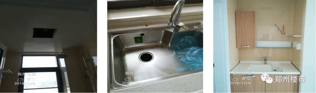 2、浴霸及水盆下水未装,浴室柜镜托不正且两侧缝隙未做处理。↓↓↓