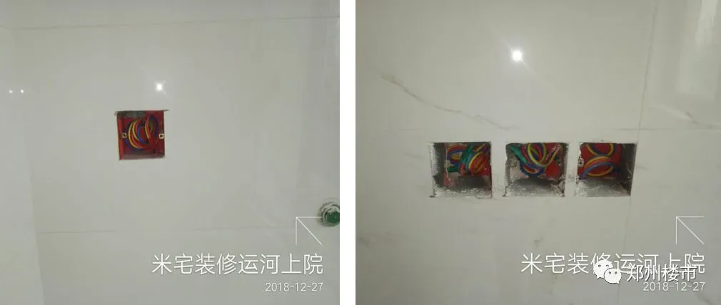 3、室内所有墙砖处底盒均采用水泥封闭牢固工艺施工,从而避免了后期安装开关插座时破坏瓷砖,如下图。↓↓↓