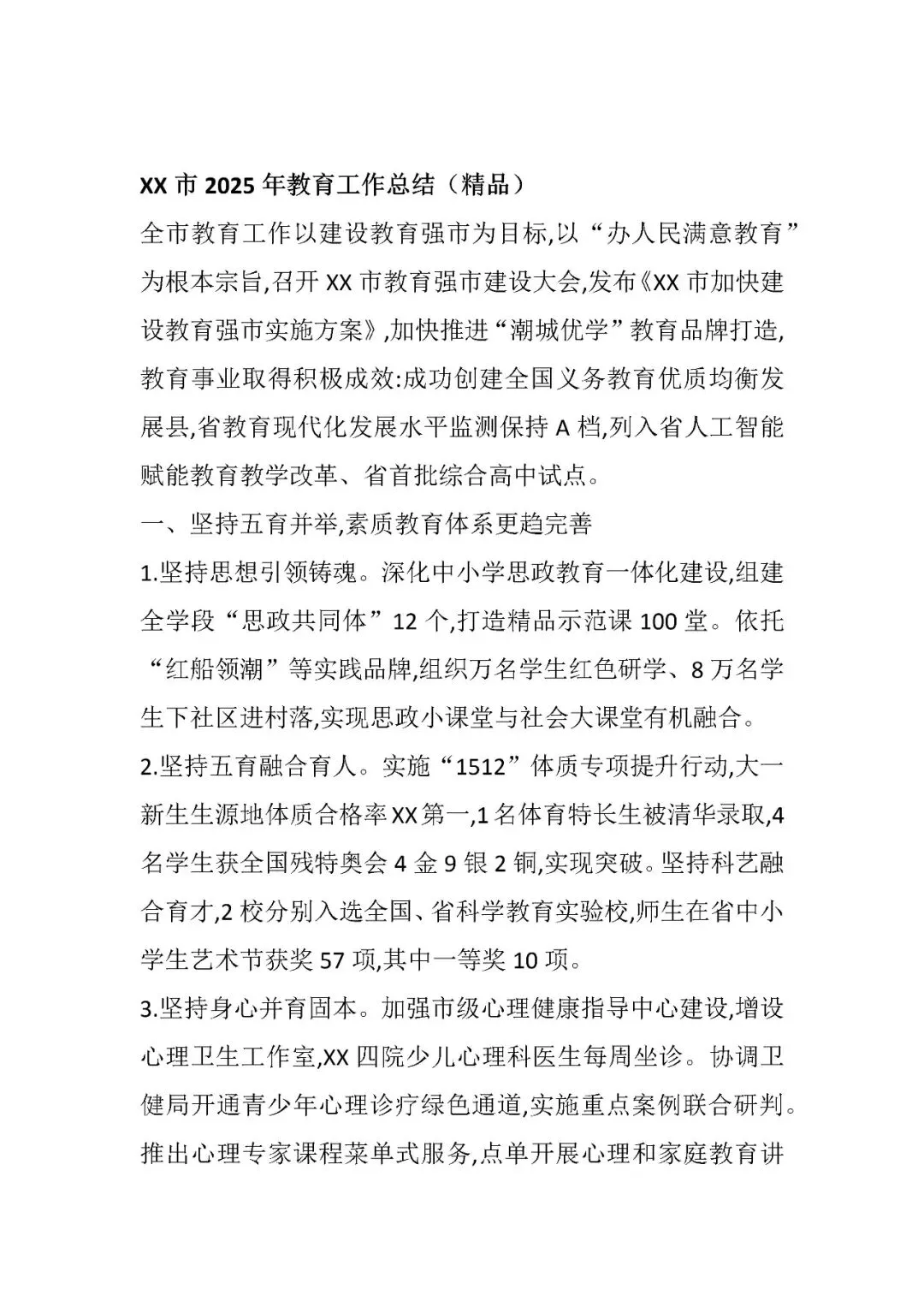 >XX市2025年教育工作总结