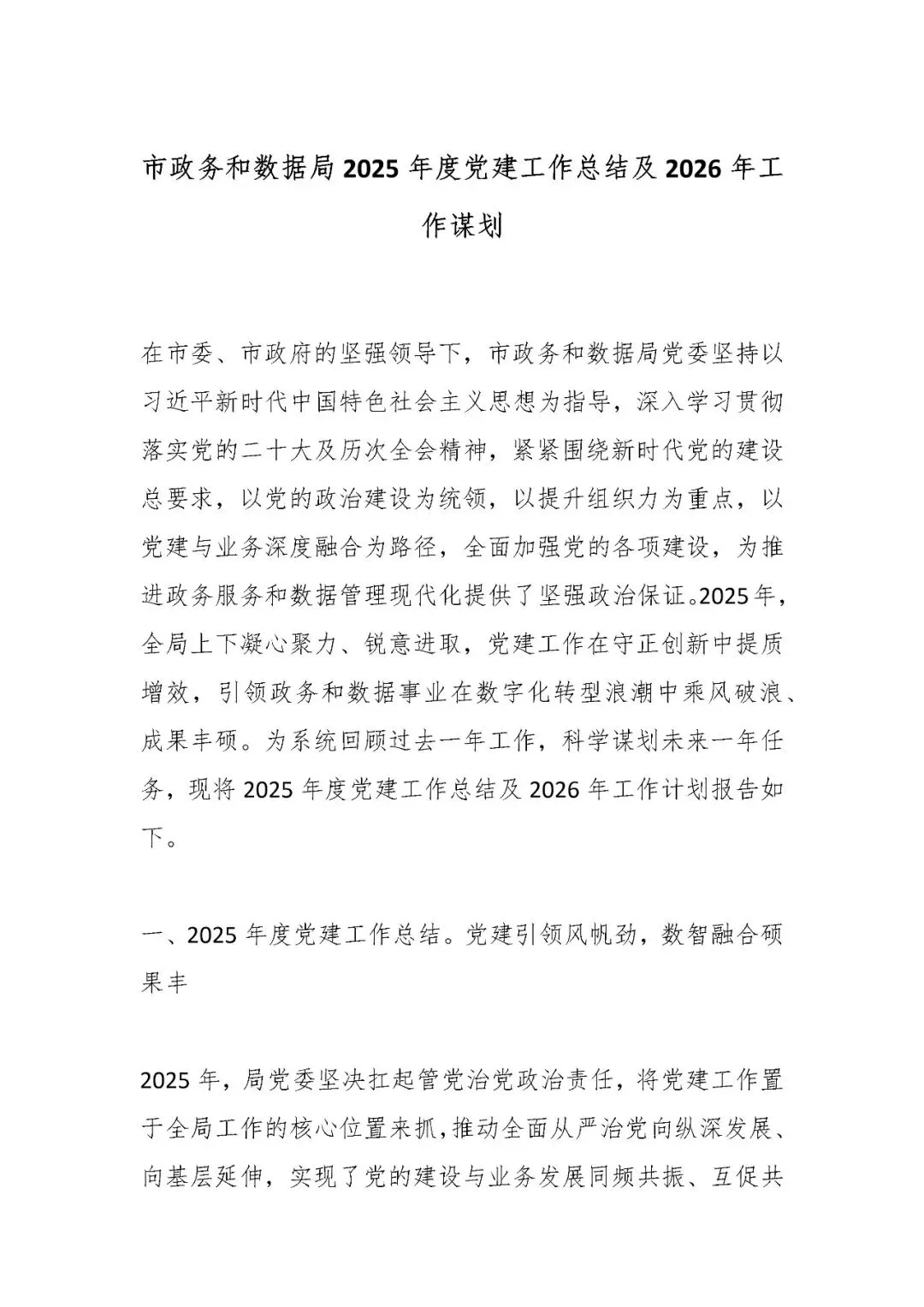 >市政务和数据局2025年度党建工作总结及2026年工作谋划