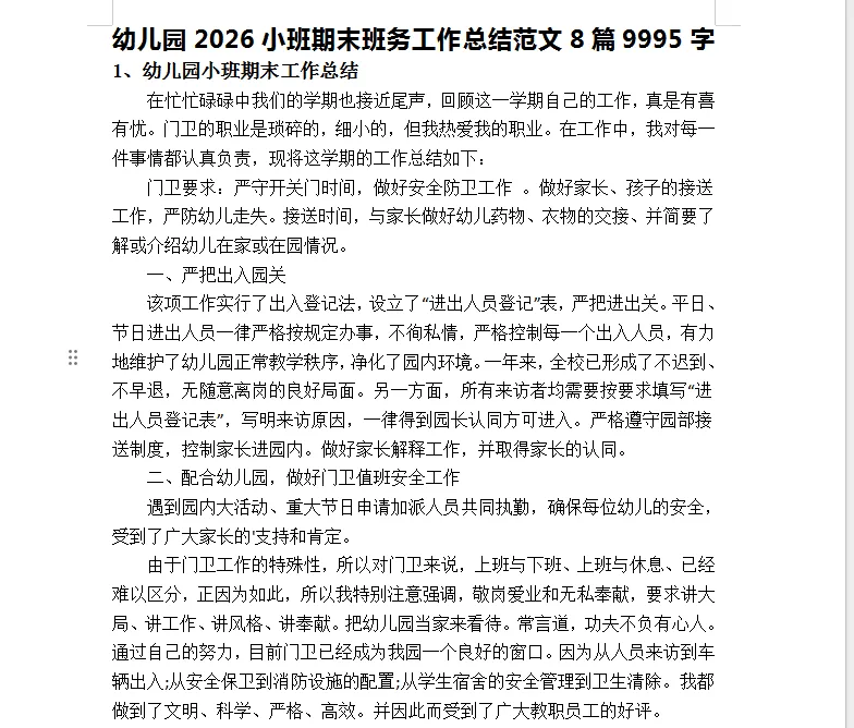 >幼儿园2026小班期末班务工作总结范文8篇9995字