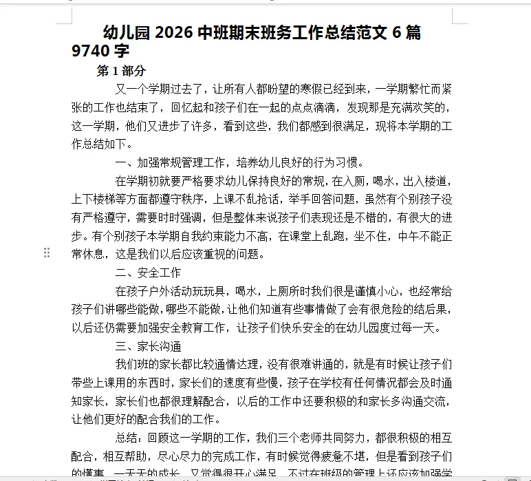 幼儿园2026中班期末班务工作总结范文6篇9740字
